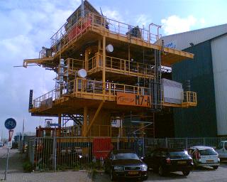 Op een nieuw platform (die nog op het land staat) telecommunicatie apparatuur getest: