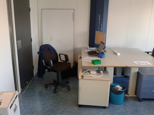 Mijn bureau in een hoekje van ons kantoor in Haarlem, de volledige bureau’s konden helaas niet mee, de ruimte is wat kleiner. De deur blijft dicht (er is een 2e deur), ik vind het zo een prima plek in de hoek 🙂
