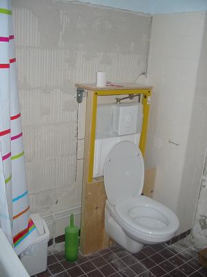 Het hangtoilet dat ik er al in had gemaakt moet er nu ook weer uit :~