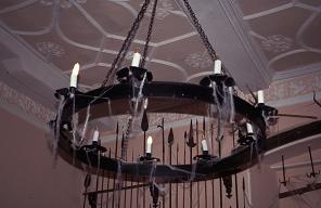 Dus wij er naar toe. Het bleek dat je moest wachten tot een soort rondleiding zou beginnen, en eigenlijk hadden we nog steeds geen idee wat het voorstelde. Het werd nog gekker toen de rondleiding begon, want de eerste kamer van het landhuis bleek een soort nep spook kamer te zijn met spinrag aan de lampen en zo.