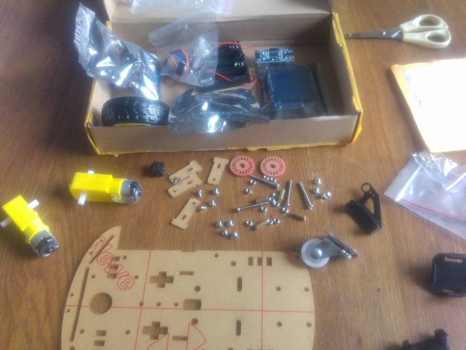 Op diverse Chinese websites kun je voor weinig geld een leuke robot kit kopen. Ik heb voor 16 euro(!) een robot kit gekocht met 2 aangedreven wieltjes.