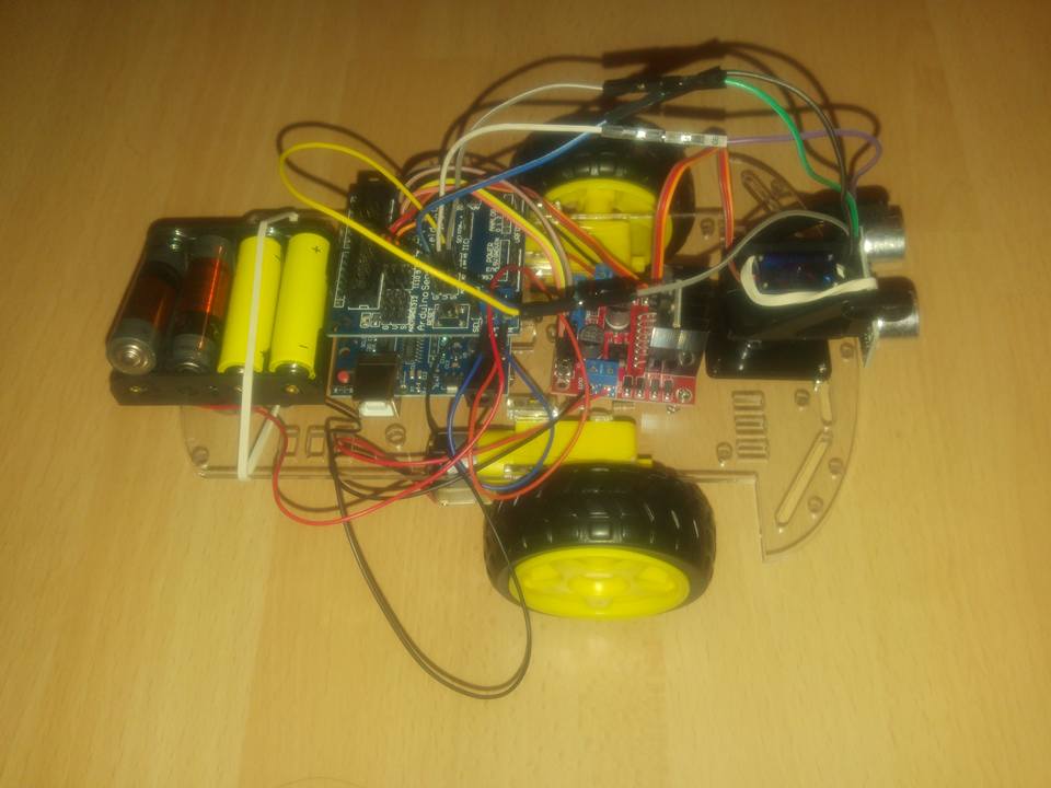 In één avondje heb ik bovenstaande robot in elkaar gezet, en kon zelfstandig rondrijden. Het is nog wat rommelig, ik wil nog bluetooth connectie toevoegen en dan alles wat netter monteren.